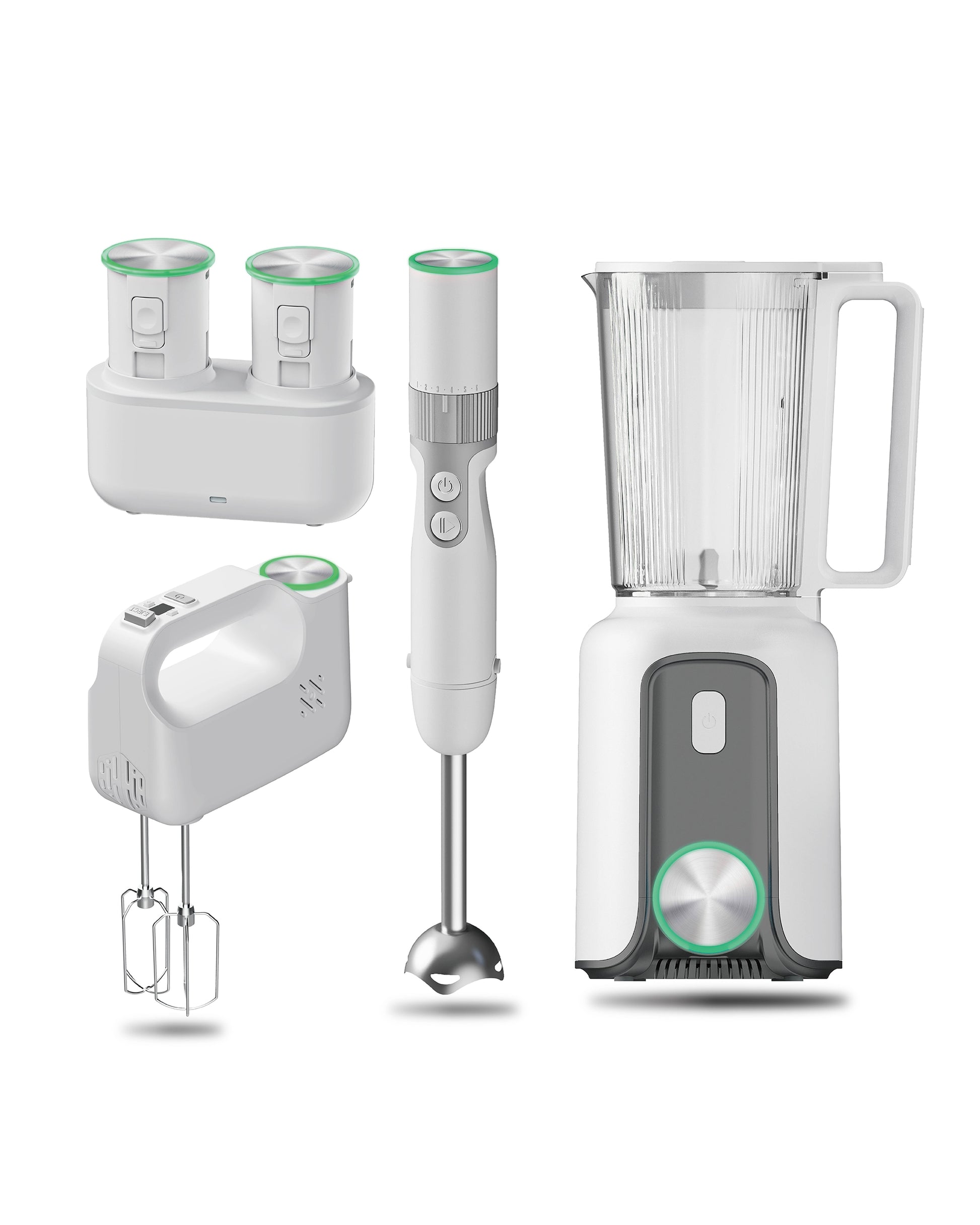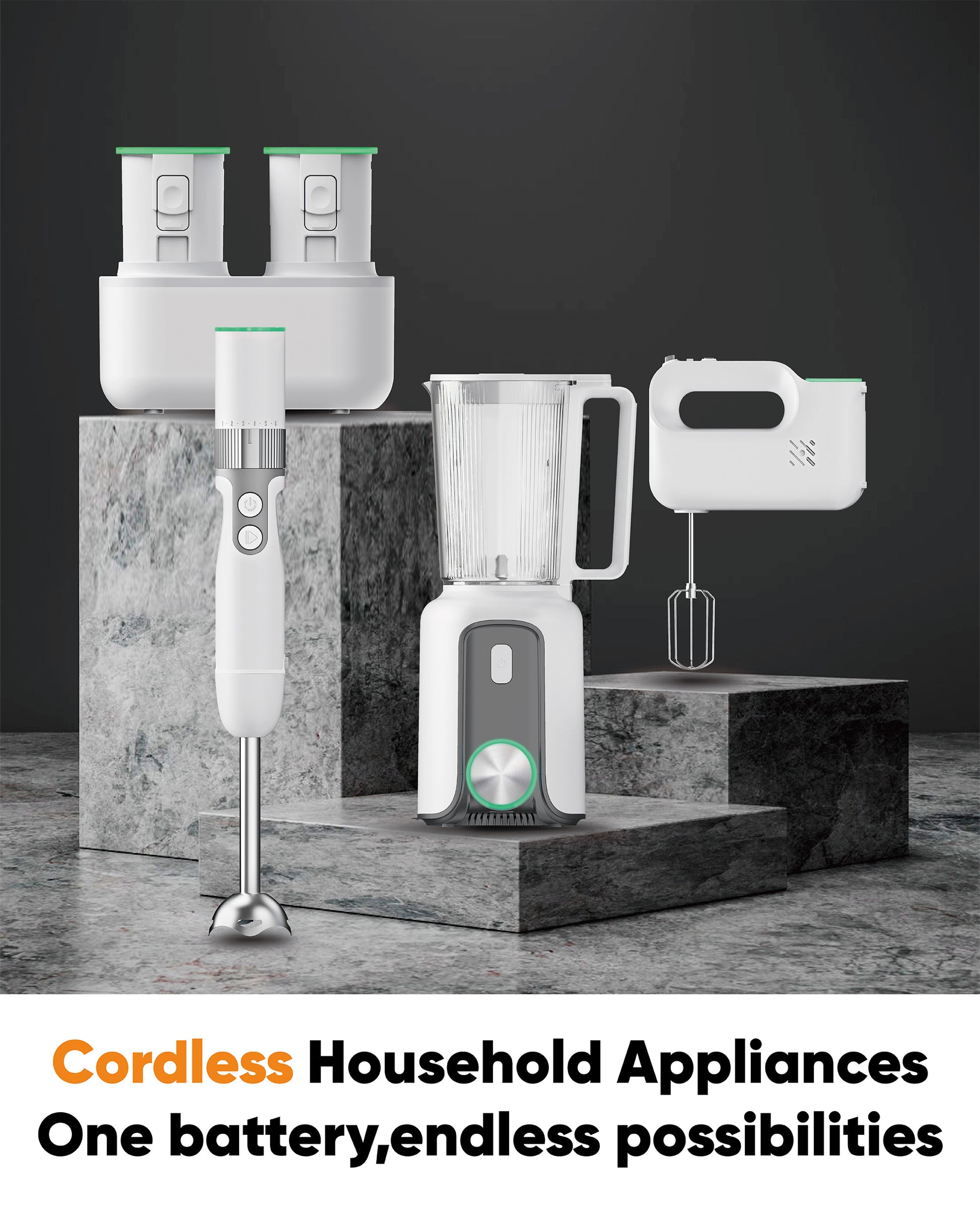 - One Battery,Endless Possibilities: All the immersion blender handheld, hand mixer, and smoothie blender are cordless and powered by the same battery. You can easily switch between different appliances, whether at home or outdoors – it handles everything effortlessly.