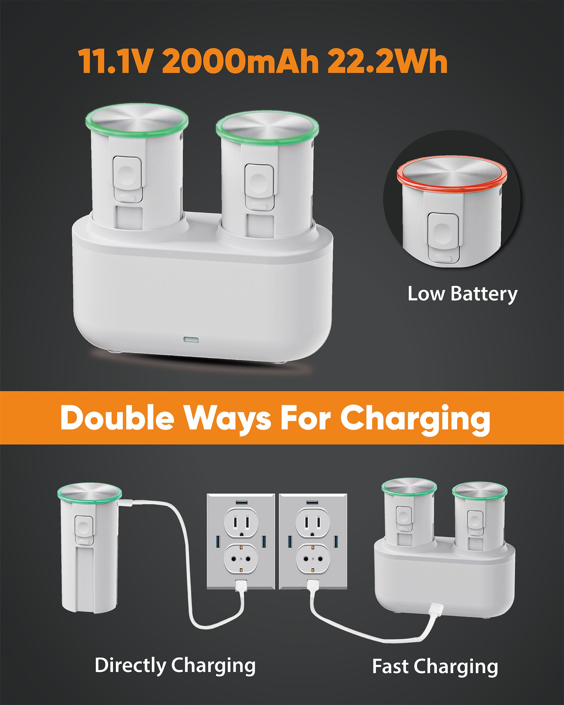 - Dual Battery & Dual Charging Mode: The cordless set includes two high-capacity batteries and a fast-charging base, supporting both battery and base charging modes to eliminate power anxiety.