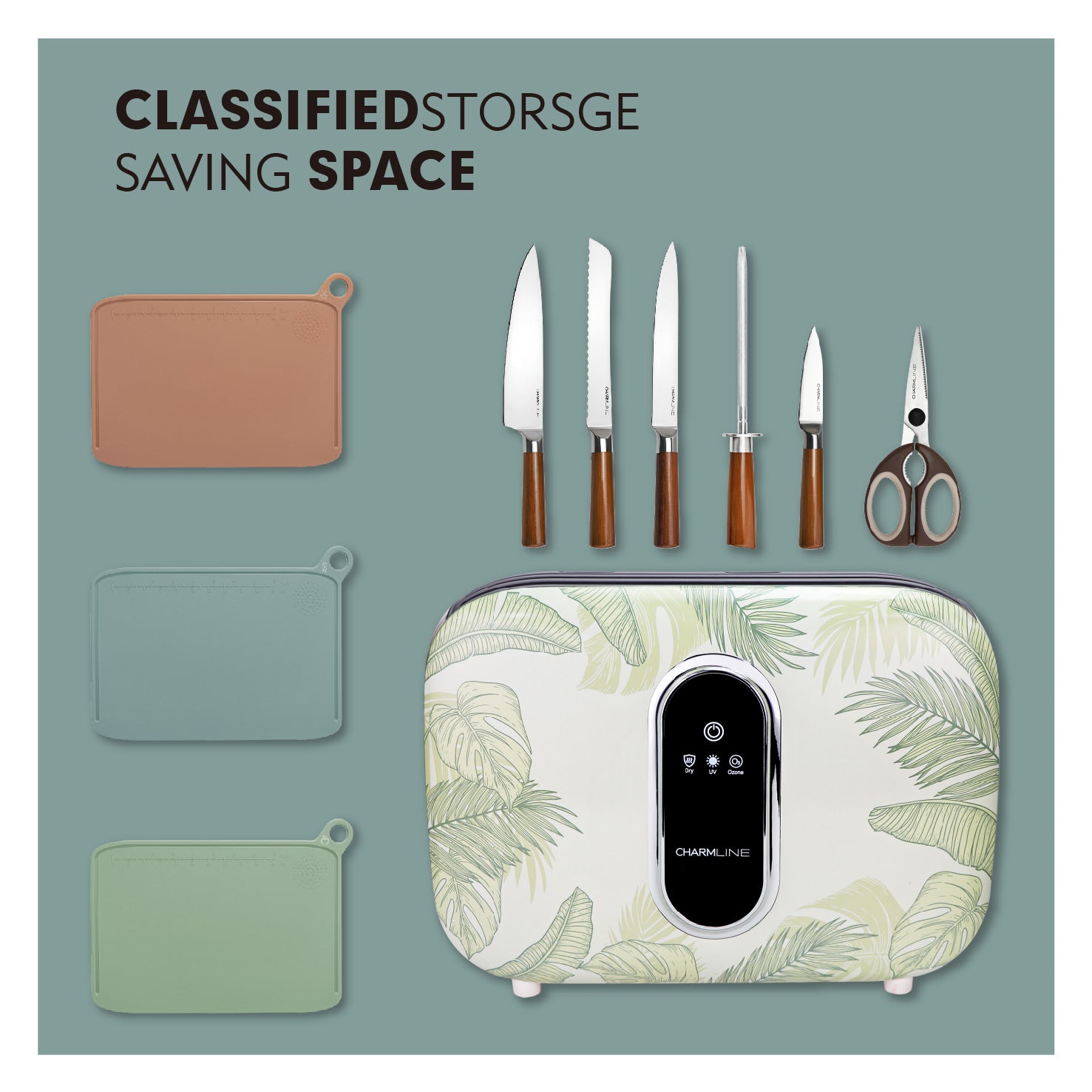 - WITH DRYING BASE: Make dripping knives and wet cutting boards a thing of the past. In addition to air-dry cleaning, the cutting board organizer also performs a 30-minute drying process to keep knives chopping boards dry. Always ready to use, to protect our health.