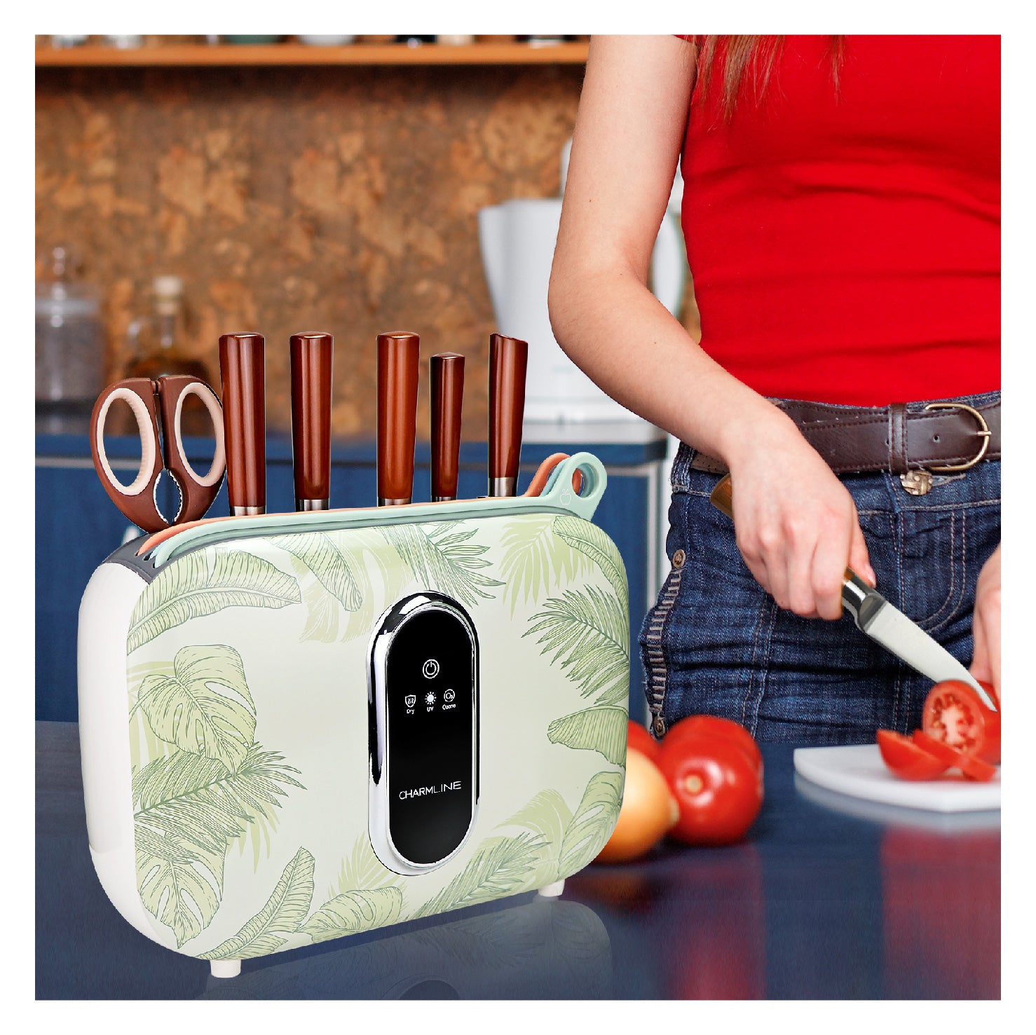 Charmline Smart Cutting Board And Knife Set With Holder Leaf Theme